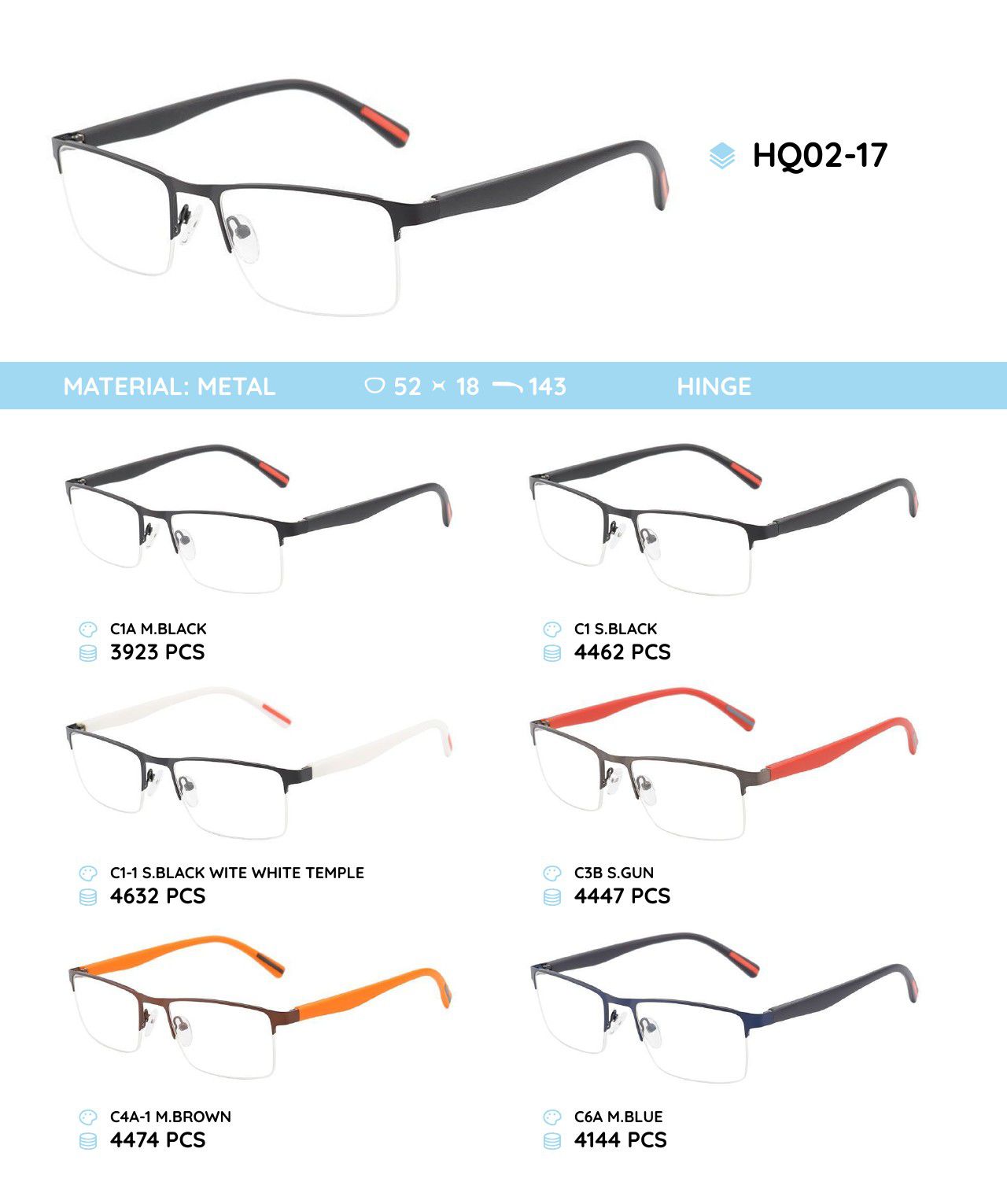 Металлическая оправа с дужками из материала TR-90 HQ02-17