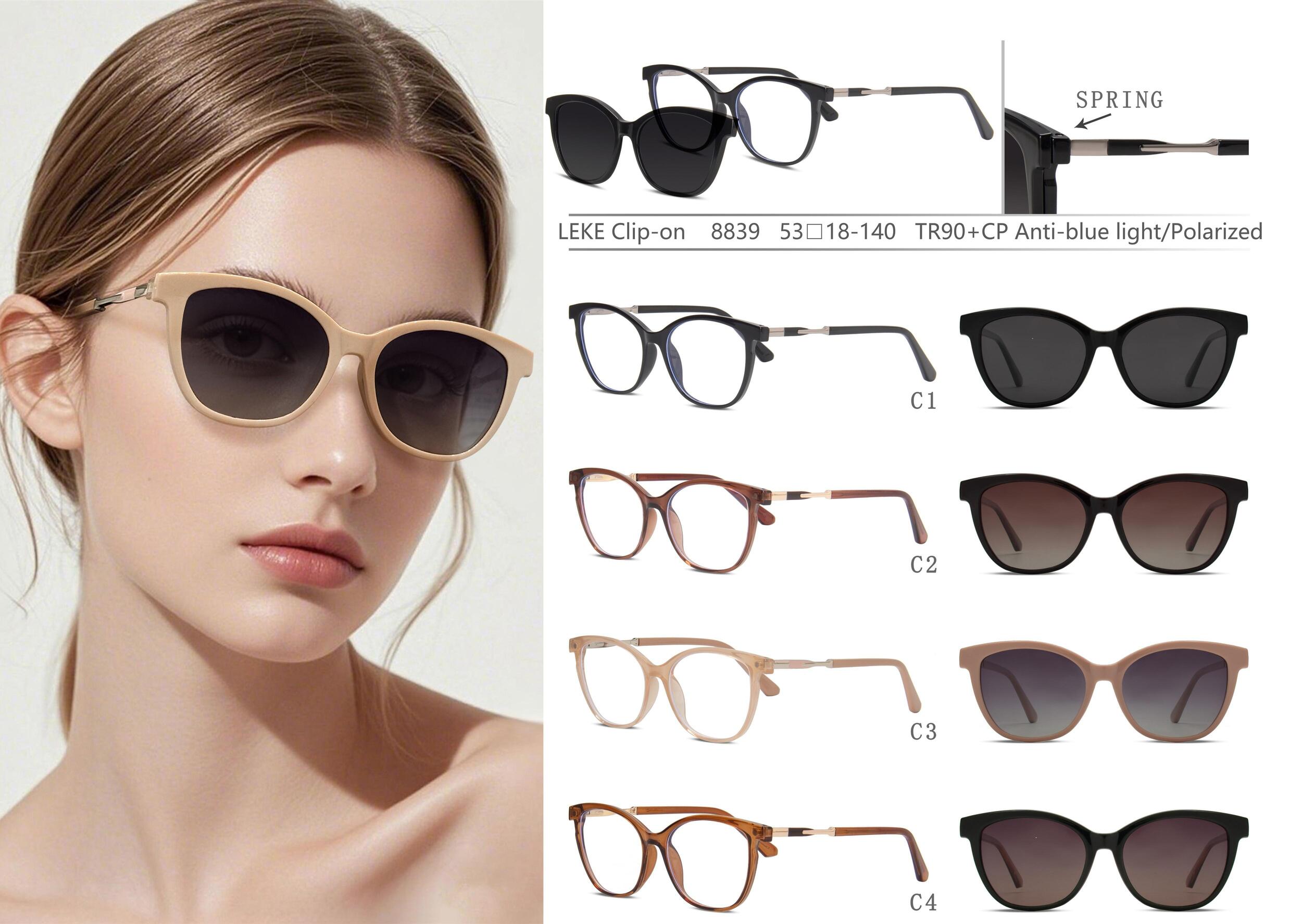 Оправа для очков пластиковая TR90+CP с защитой от синего света, с флексом + поляризационная солнцезащитная насадка (клипон) Leke LK8839
