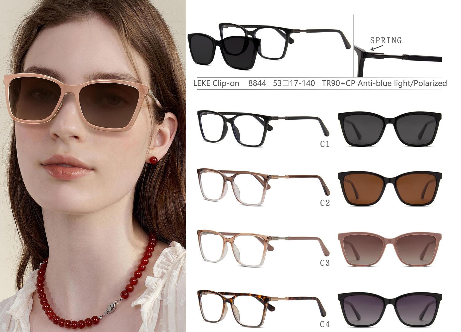 Оправа для очков пластиковая TR90+CP с защитой от синего света, с флексом + поляризационная солнцезащитная насадка (клипон) Leke LK8844