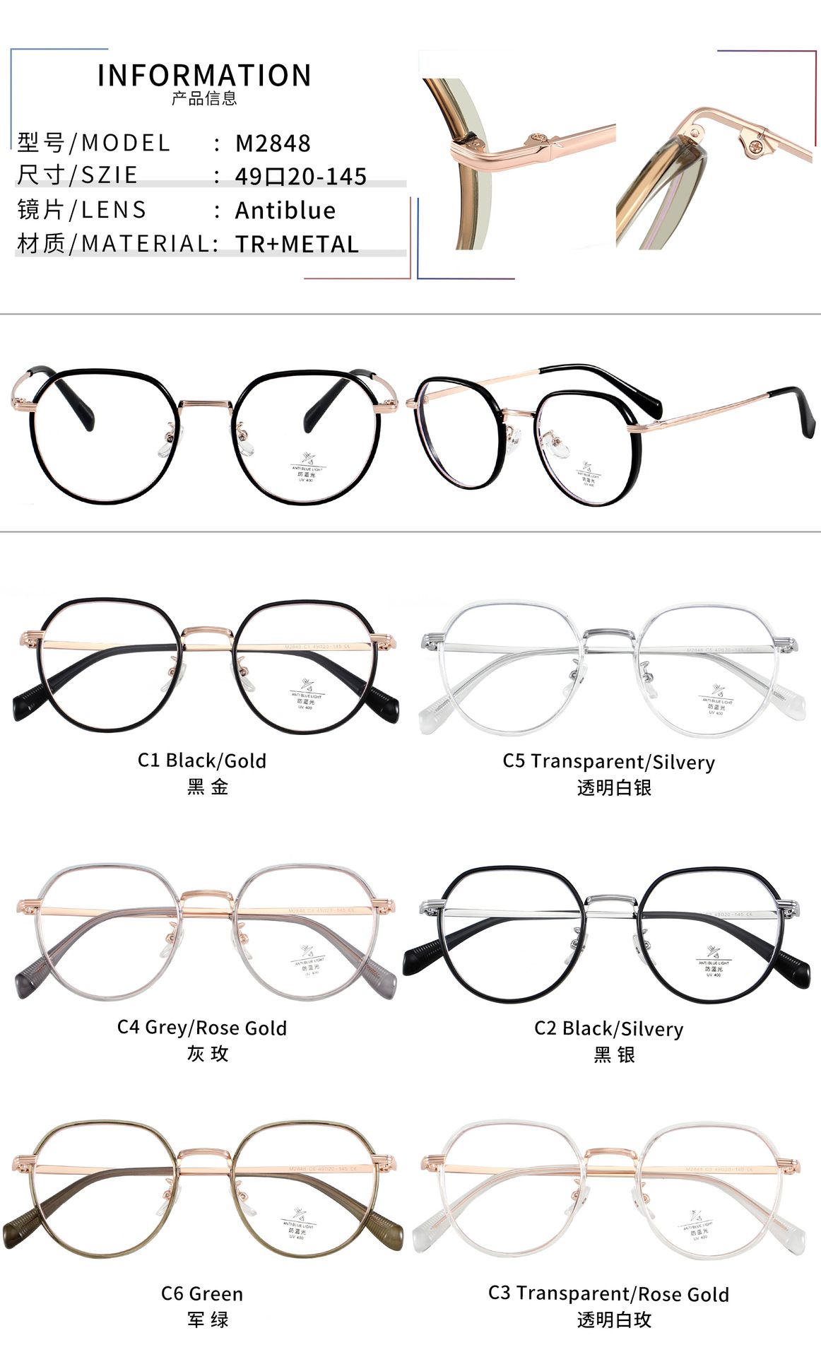 Оправа комбинированная с линзами Blue Ray Cut MAMO M2848