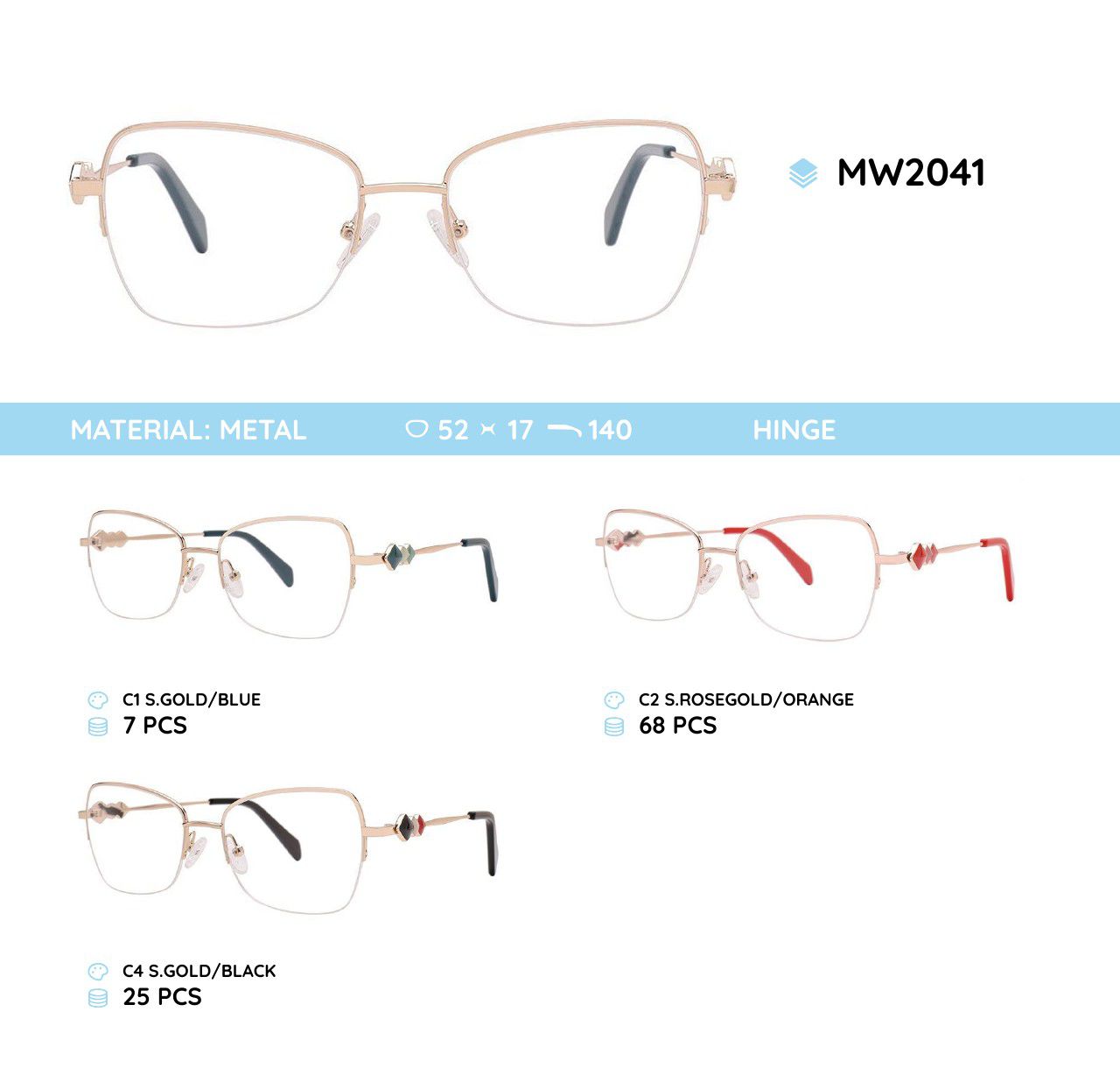 Оправа для очков металлическая женская полуободковая MW2041