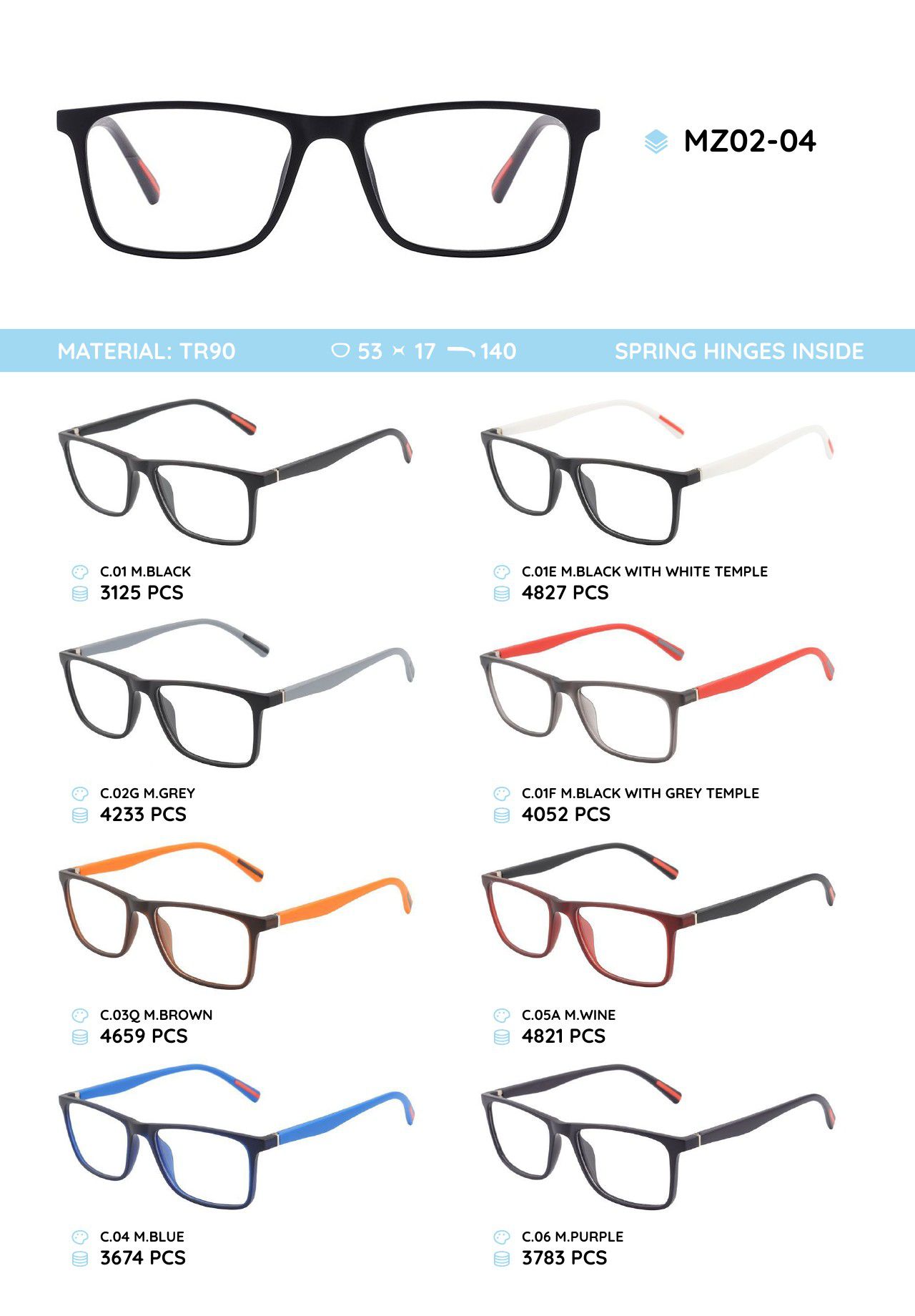 Оправа пластиковая из материала TR-90, с флексом MZ02-04