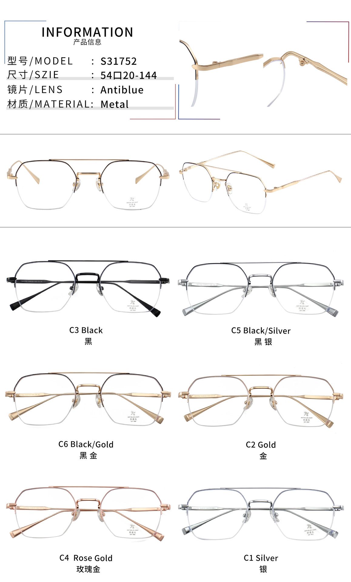 Оправа металлическая с линзами Blue Ray Cut MAMO S31752