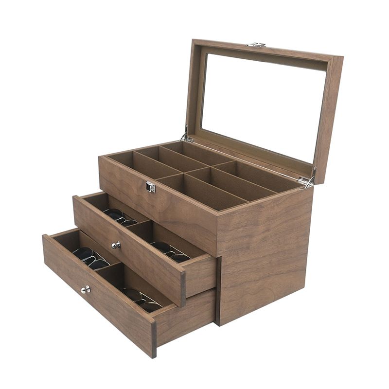 18格黑胡桃木皮内咖眼镜盒