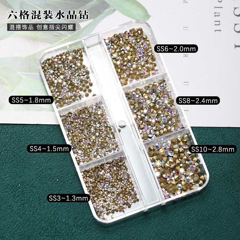 Set of rhinestones with a pointed bottom for frames and glasses decorating, magic color, sizes 1.3-2.8 mm (price per pack, 3 packs minimum)