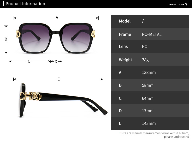 - Размер: ширина линзы - 64 мм, мост - 17 мм, длина заушника - 143 мм