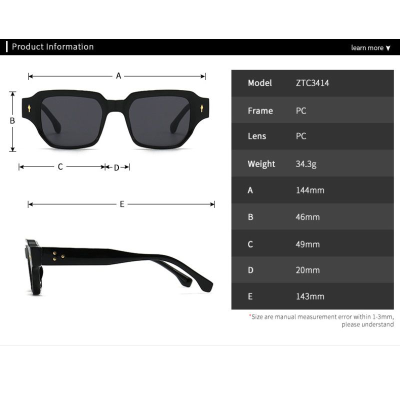 - Size: lens width - 49 mm, bridge - 20 mm, temple length - 143 mm