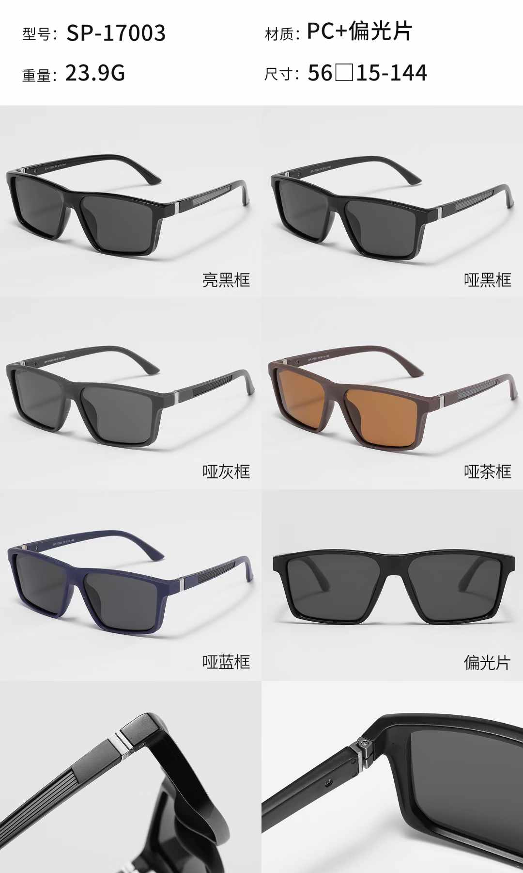 - Lens material: plastic, polarized