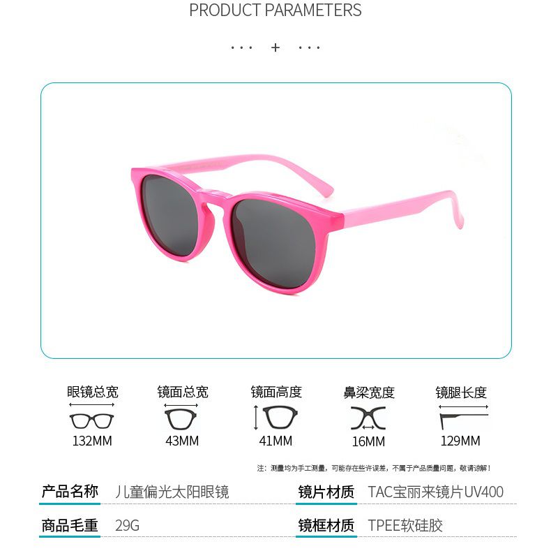 These children's sunglasses are made of soft, hypoallergenic silicone for comfortable all-day wear. They feature full UV protection lenses to protect your baby's eyes from the sun's harmful rays. Colorful and stylish, the glasses are available in a variety of colors, making them attractive to children. Their flexibility and durability make them ideal for active beach activities or outdoor play.
